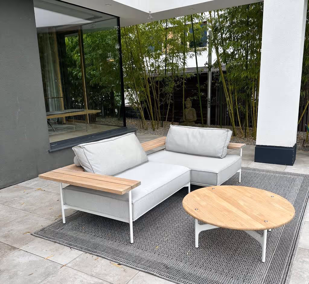 Dieses Set bietet eine flexible Gestaltungsmöglichkeit für Terrasse oder Garten und überzeugt durch die gewohnt hohe Verarbeitungsqualität von Gloster.