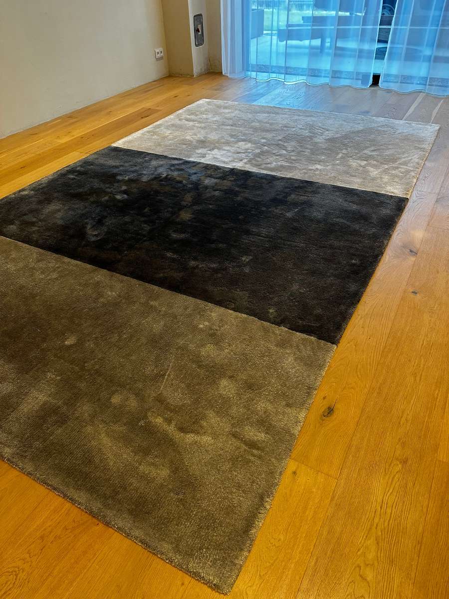 Die Teppiche sind aus Lyocell, einer hochwertigen Faser auf Cellulosebasis, gefertigt und im aufwendigen Tufting-Verfahren handgearbeitet. Ein Stück mit starkem dekorativen Appeal, um dem Wohnraum eine moderne Note zu verleihen.