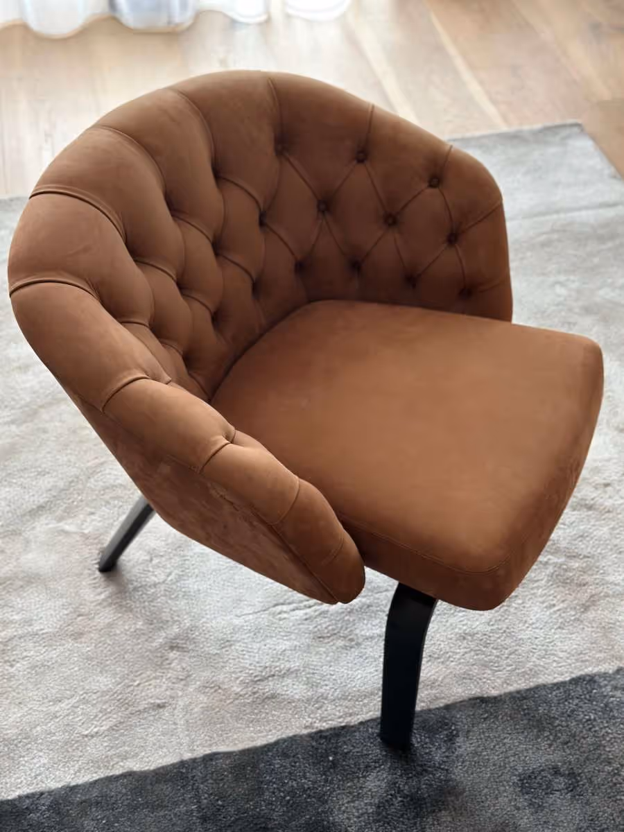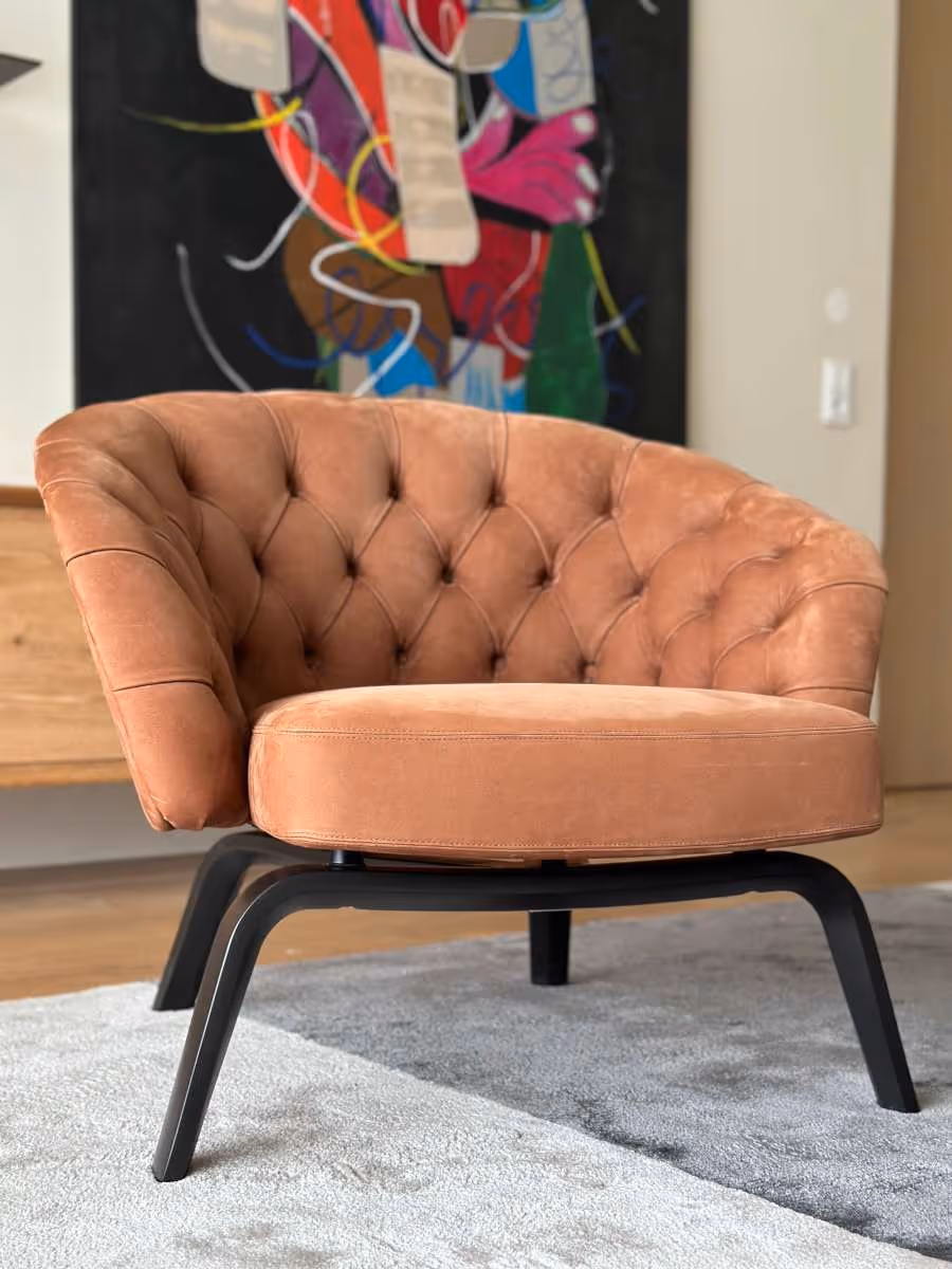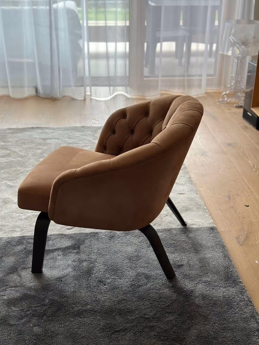 Der Sessel Winston präsentiert eine moderne Variante der traditionellen Capitonné-Verarbeitung. Ein Hauch von Vintage trifft auf fortschrittlichste Technologie von Minotti.